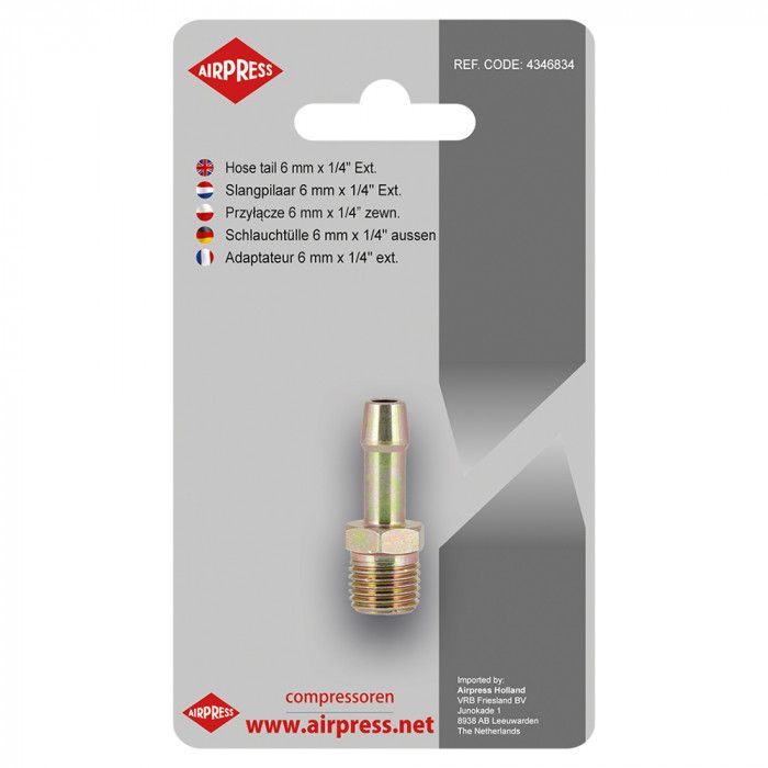 Air hose tail 6 mm x 1/4" male